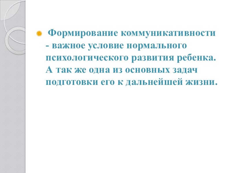 Слайд 4 Формирование коммуникативности - важное условие нормального психологического развития ребенка. А