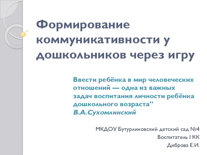 Слайд 2Формирование коммуникативности у дошкольников через игру