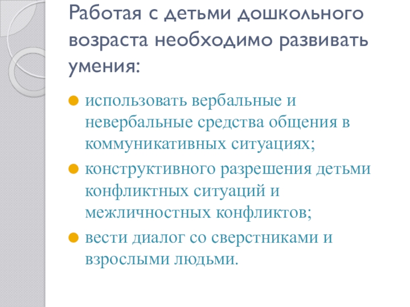 Слайд 22Работая с детьми дошкольного возраста необходимо развивать умения: