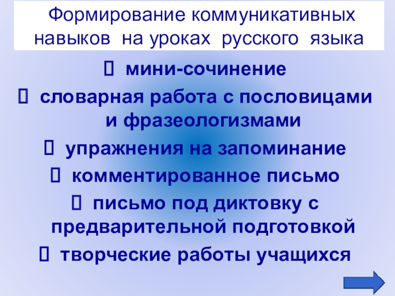 Формирование коммуникативных навыков на уроках русского языка