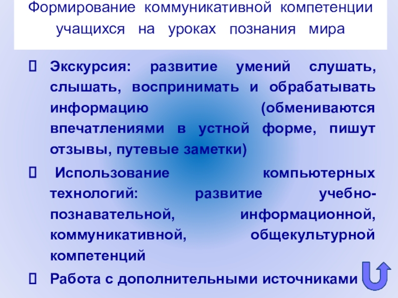 Экскурсия: развитие умений слушать, слышать, воспринимать и обрабатывать информацию (обмениваются впечатлениями в устной форме, пишут отзывы, путевые заметки)
