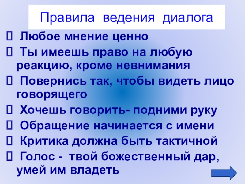Правила ведения диалога