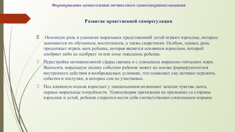 4-5 лет, когда происходит преимущественное развитие нравственной саморегуляции