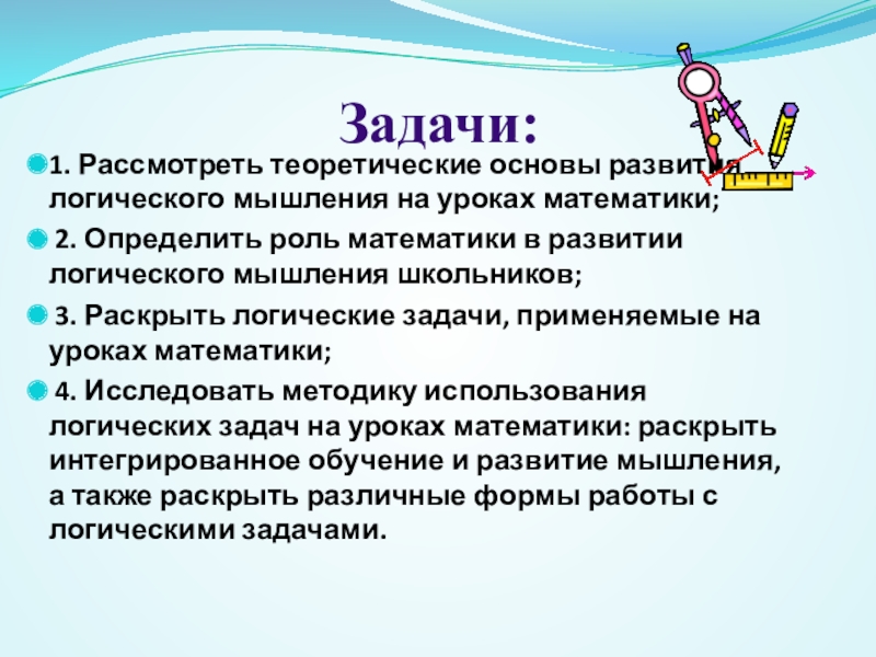 1. Рассмотреть теоретические основы развития логического мышления на уроках математики;