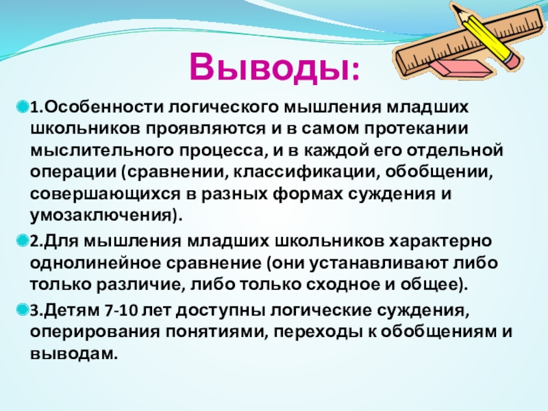 1.Особенности логического мышления младших школьников проявляются и в самом протекании мыслительного