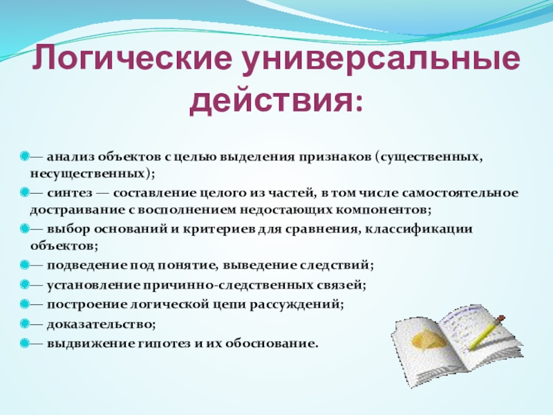 — анализ объектов с целью выделения признаков (существенных, несущественных);