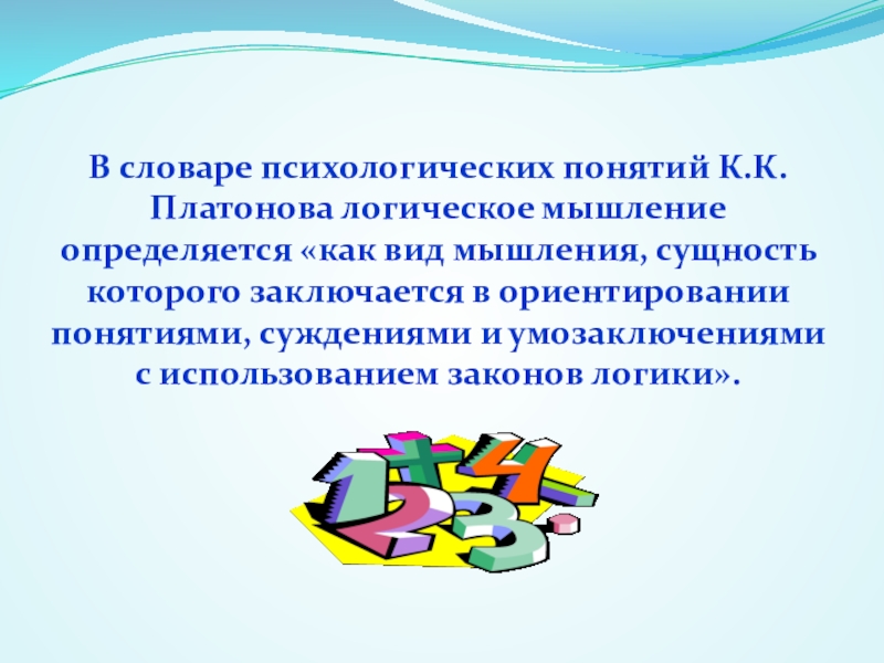 Слайд 5В словаре психологических понятий К.К.Платонова логическое мышление определяется «как вид мышления,