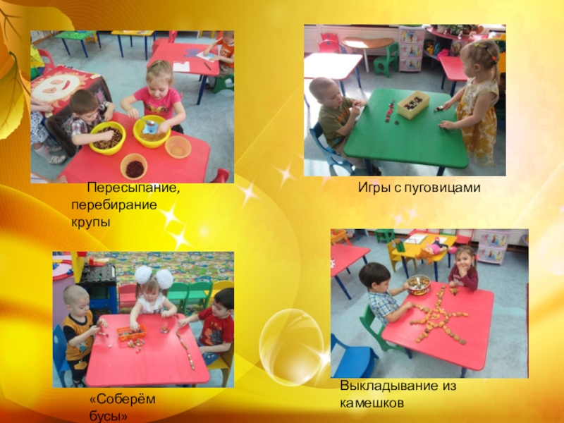 - формировать умение обследовать предметы, обогащать представления об окружающем;