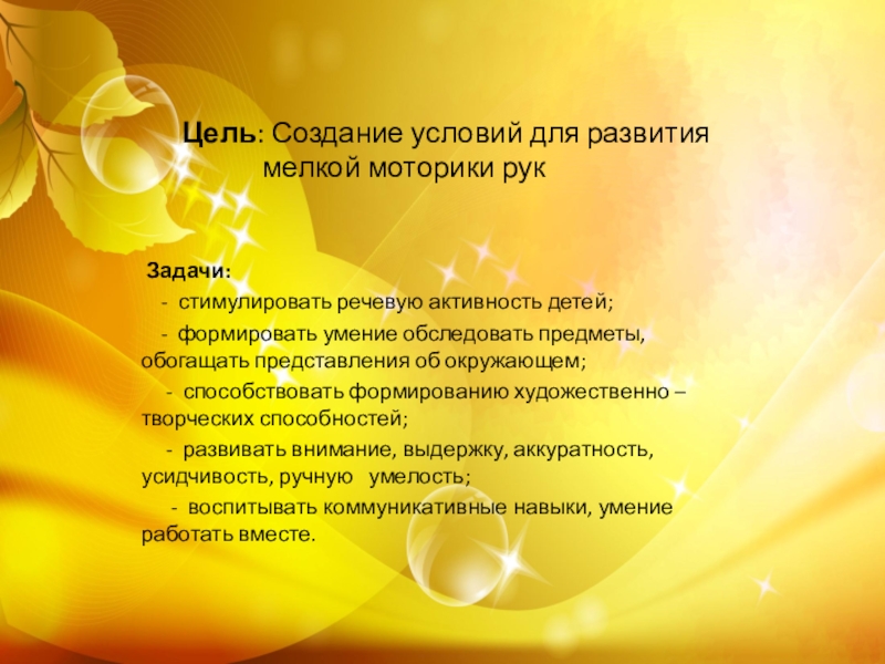 - развивать внимание, выдержку, аккуратность, усидчивость, ручную умелость;