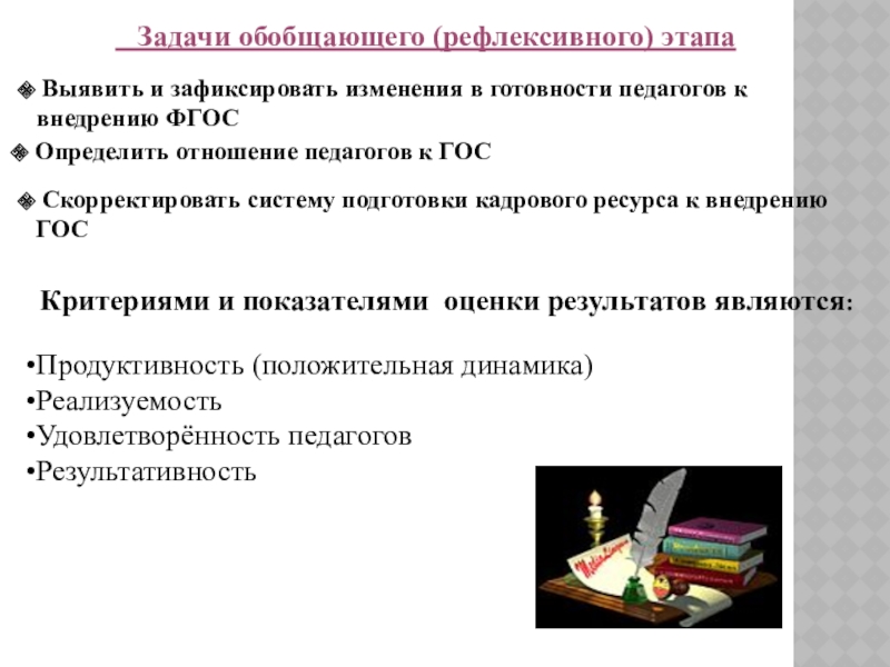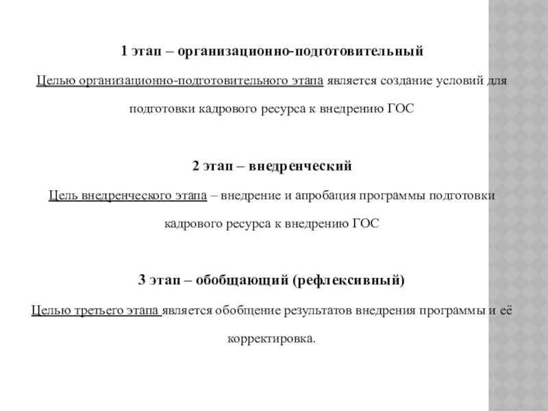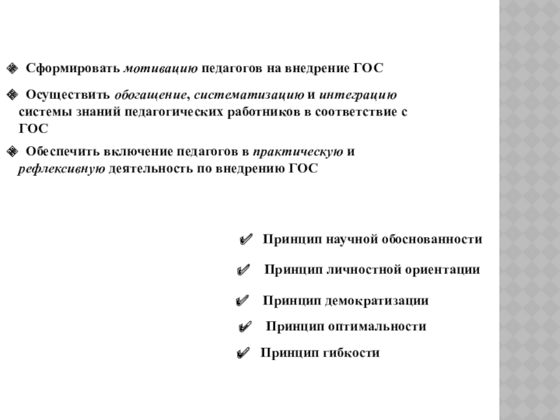 Сформировать положительную динамику в подготовке кадров к внедрению ГОС