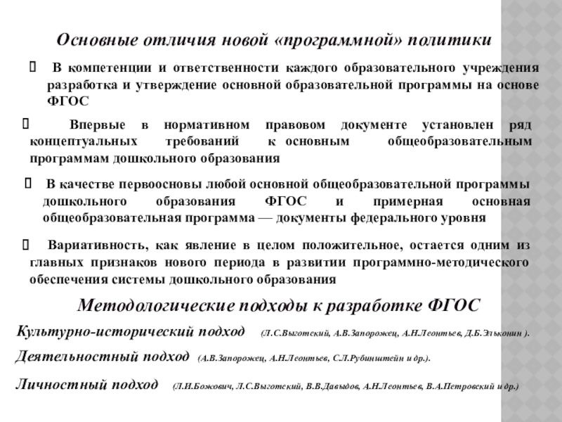 Культурно-исторический подход (Л.С.Выготский, А.В.Запорожец, А.Н.Леонтьев, Д.Б.Эльконин ).