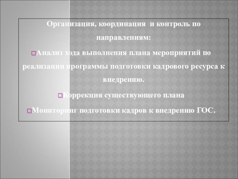 Скорректировать систему подготовки кадрового ресурса к внедрению ГОС