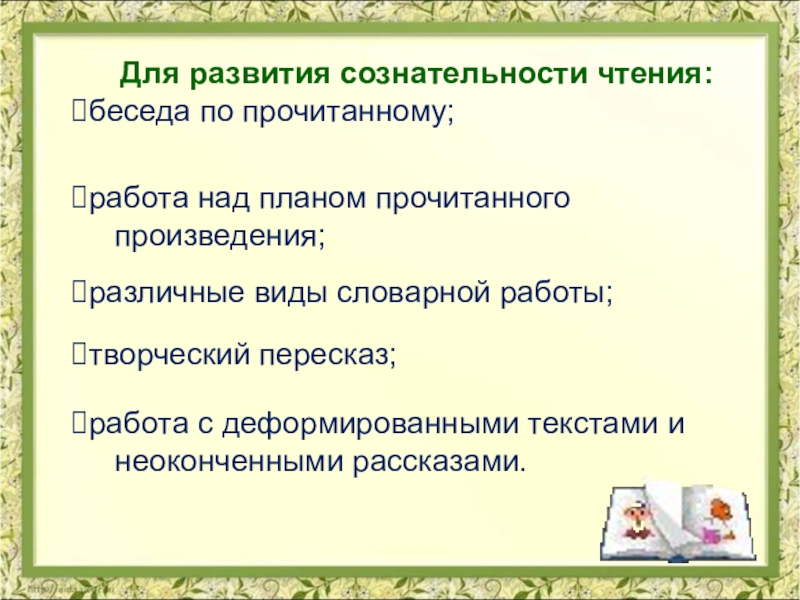 Связь знаний, полученных детьми при чтении, с жизненным опытом, является одним из способов, способствующих формированию сознательного чтения.