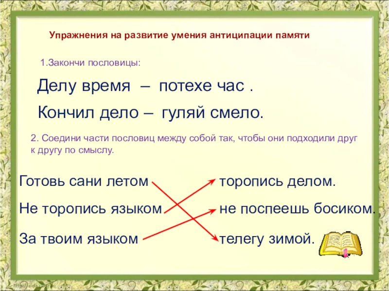 развитие умения антиципации памяти;