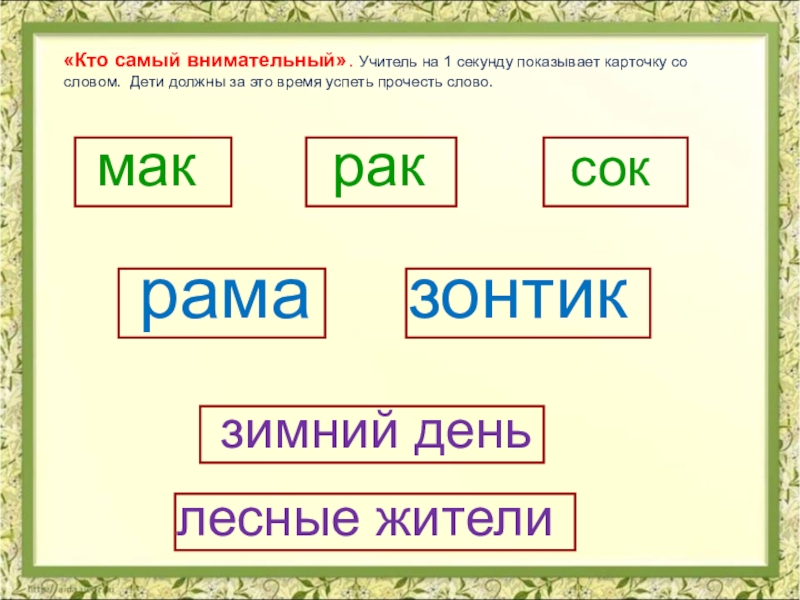 После прекращения чтения, учитель проходит по рядам и отмечает то слово, на котором остановился каждый ученик, затем задаёт вопросы на осознание прочитанного.