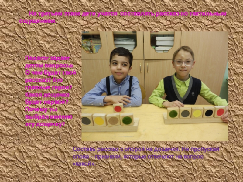 Обучение детей рассказыванию с опорой на тактильные дощечки включает три этапа: