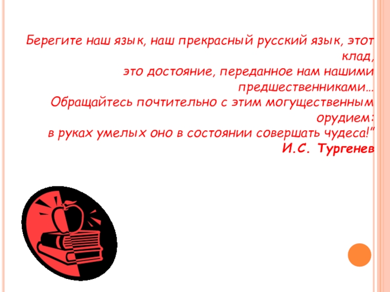 Берегите наш язык, наш прекрасный русский язык, этот клад, это достояние, переданное нам нашими предшественниками… Обращайтесь почтительно