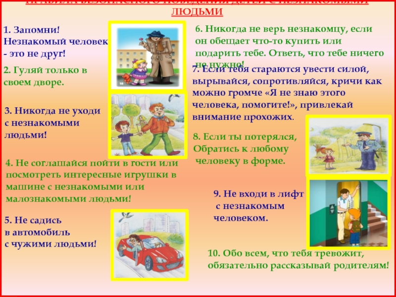 4. Не соглашайся пойти в гости или посмотреть интересные игрушки в машине с незнакомыми или малознакомыми людьми!