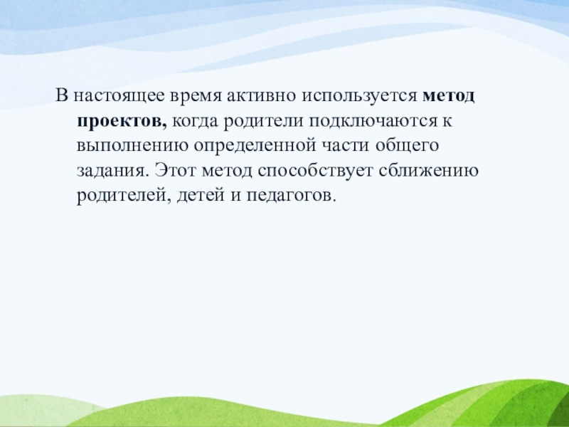 В настоящее время активно используется метод проектов, когда родители подключаются к