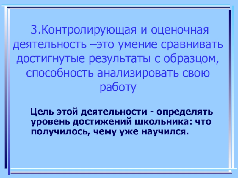 Цель этой деятельности - определять уровень достижений школьника: что получилось, чему уже научился.