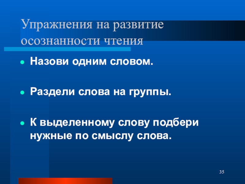 Слайд 35Упражнения на развитие осознанности чтения