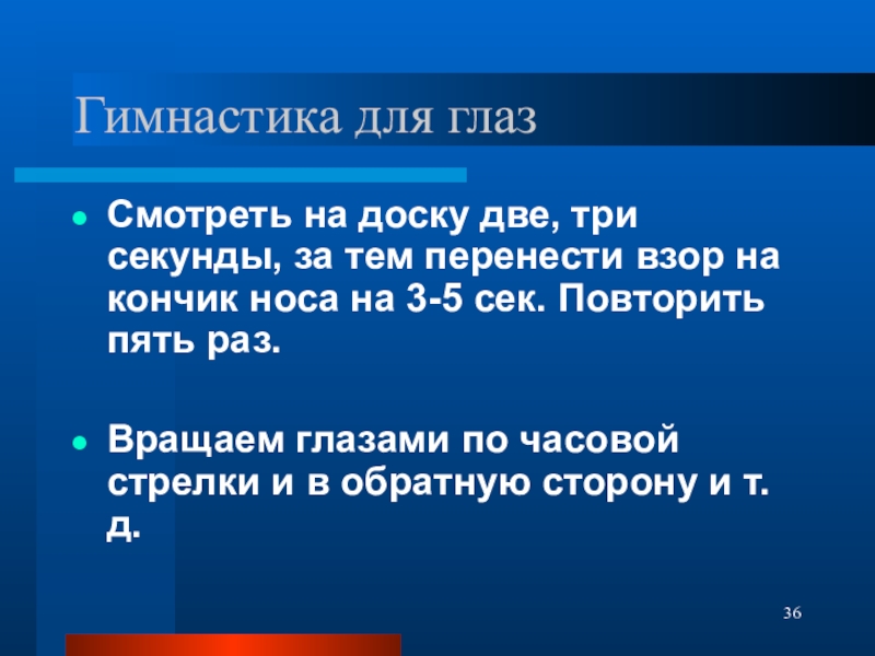 Слайд 36Гимнастика для глаз