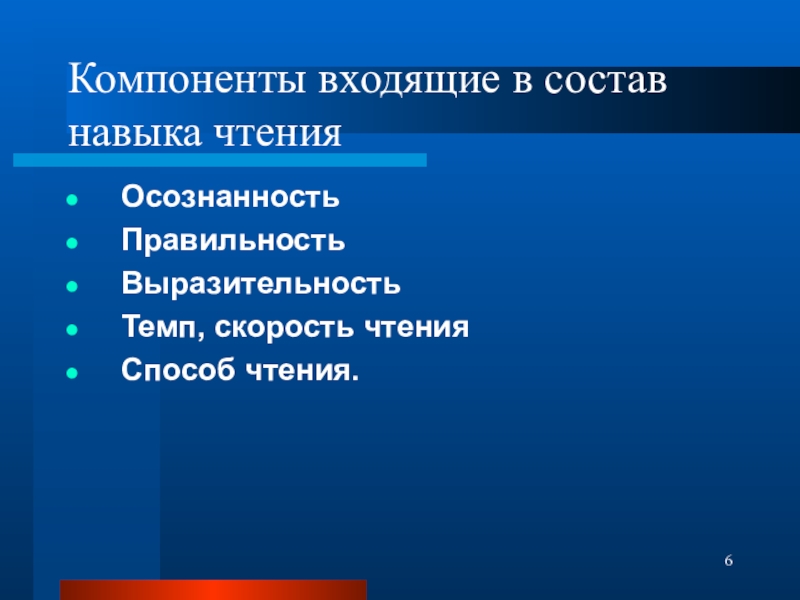 Слайд 6Компоненты входящие в состав навыка чтения