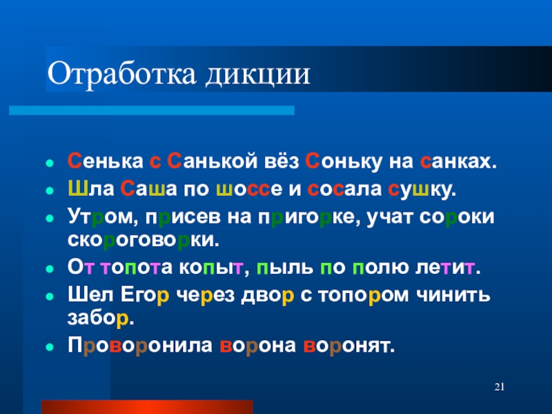 Использование скороговорки