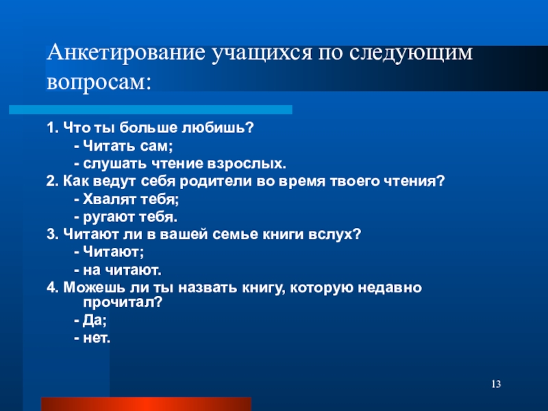 Анкетирование учащихся по следующим вопросам: