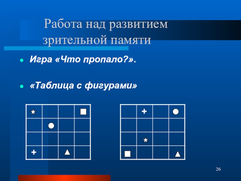 Слайд 26 Работа над развитием зрительной памяти