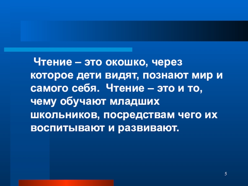 самого себя. Чтение – это и то, чему обучают младших школьников, посредствам чего их воспитывают и развивают.