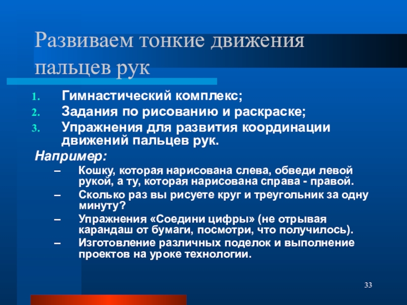 Слайд 33Развиваем тонкие движения пальцев рук