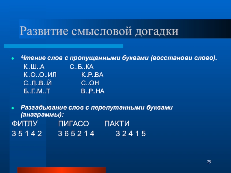 Слайд 29Развитие смысловой догадки