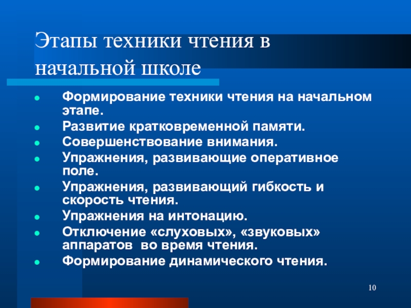 Слайд 10Этапы техники чтения в начальной школе