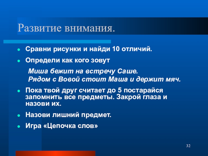 Слайд 32Развитие внимания.