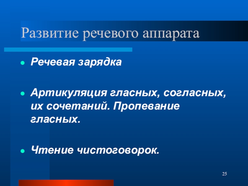 Слайд 25Развитие речевого аппарата