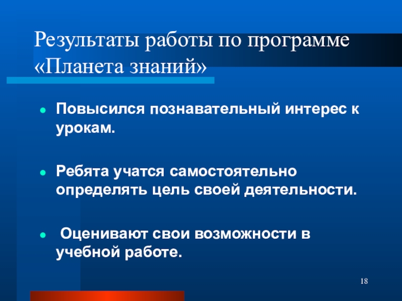 Слайд 18Результаты работы по программе «Планета знаний»