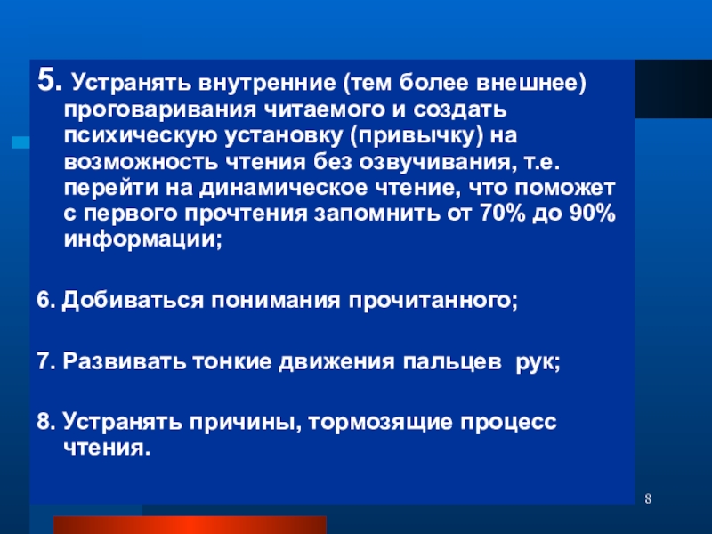 8. Устранять причины, тормозящие процесс чтения.