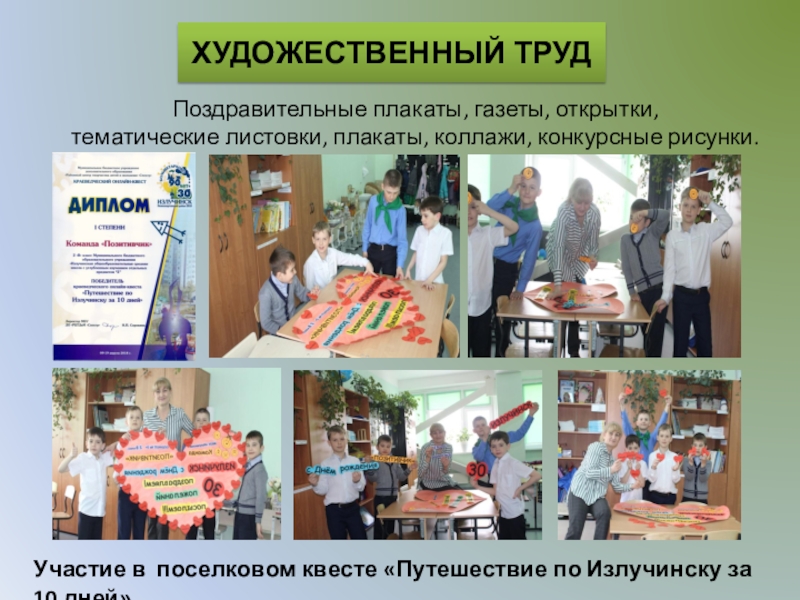 рисунки, листовки, плакаты, стенгазеты, поздравительные открытки