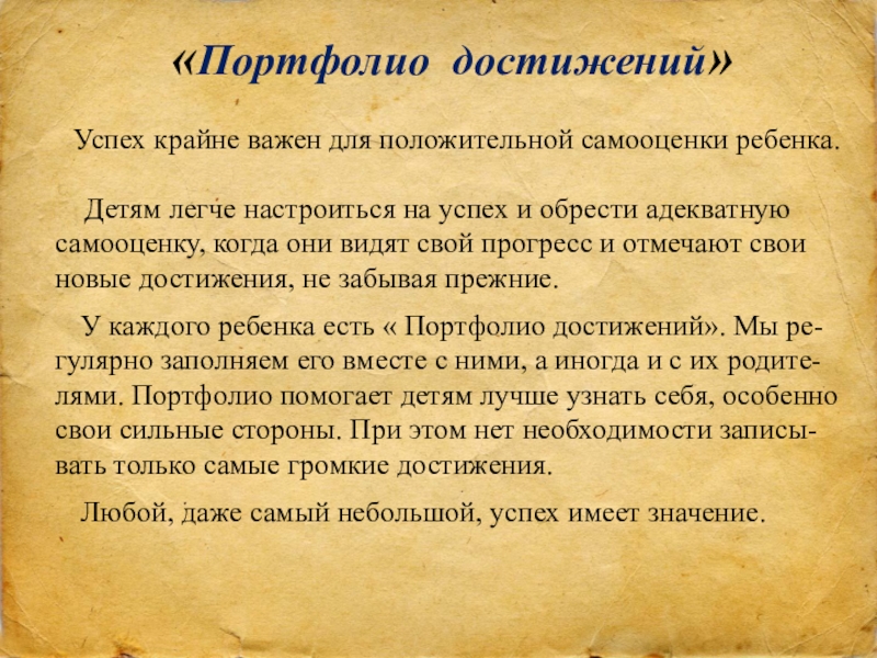 «Портфолио достижений»
