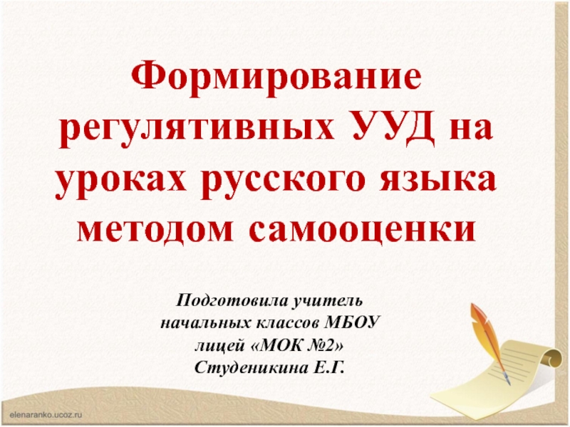 классов МБОУ лицей «МОК №2» Студеникина Е.Г.