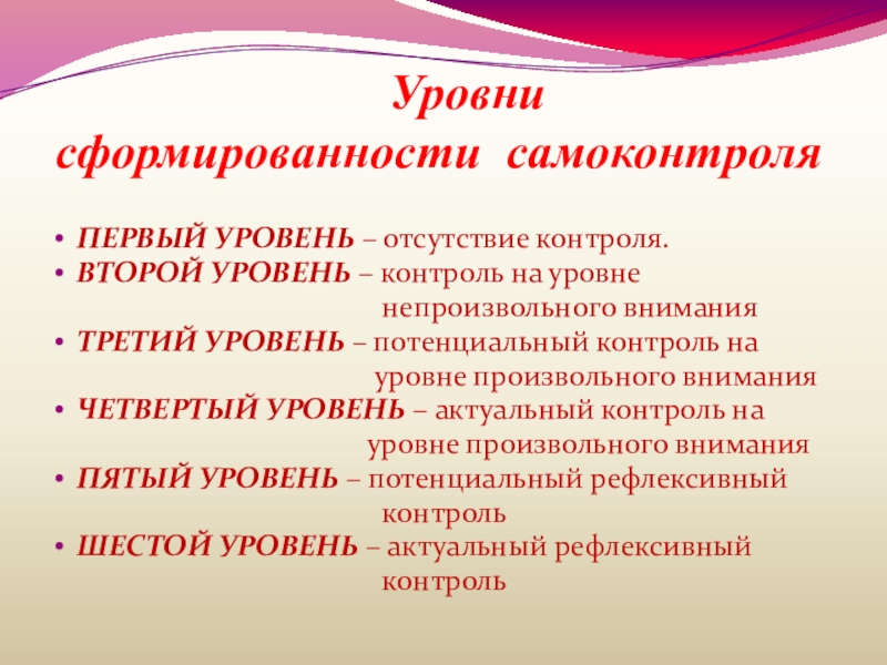 ПЕРВЫЙ УРОВЕНЬ – отсутствие контроля.