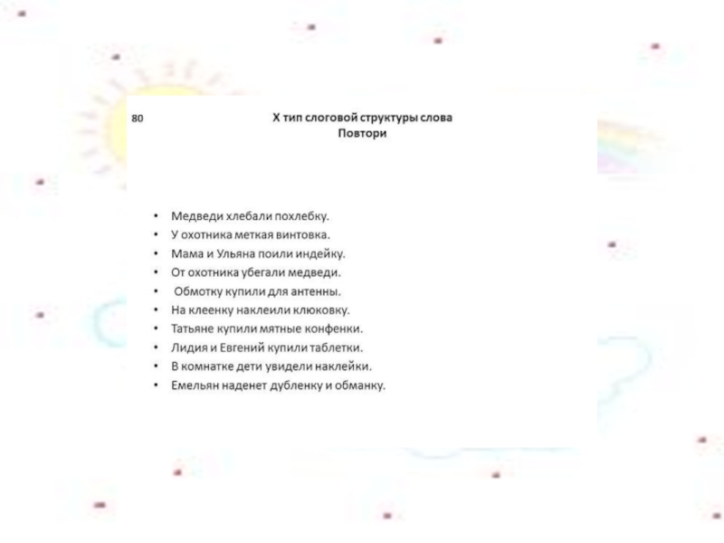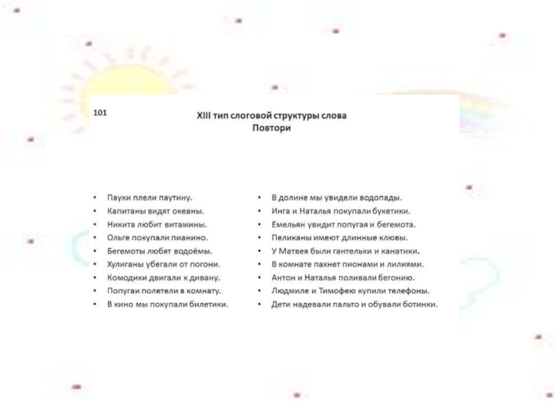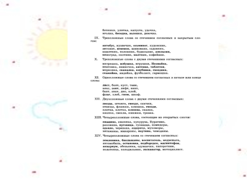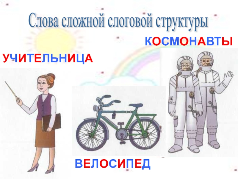 УЧИТЕЛЬНИЦАВЕЛОСИПЕДКОСМОНАВТЫ Слова сложной слоговой структуры