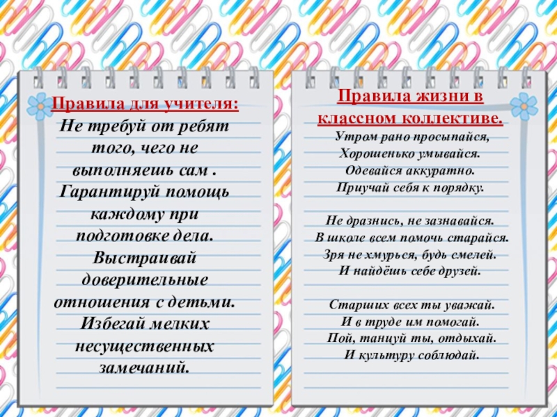 Правила жизни в классном коллективе.