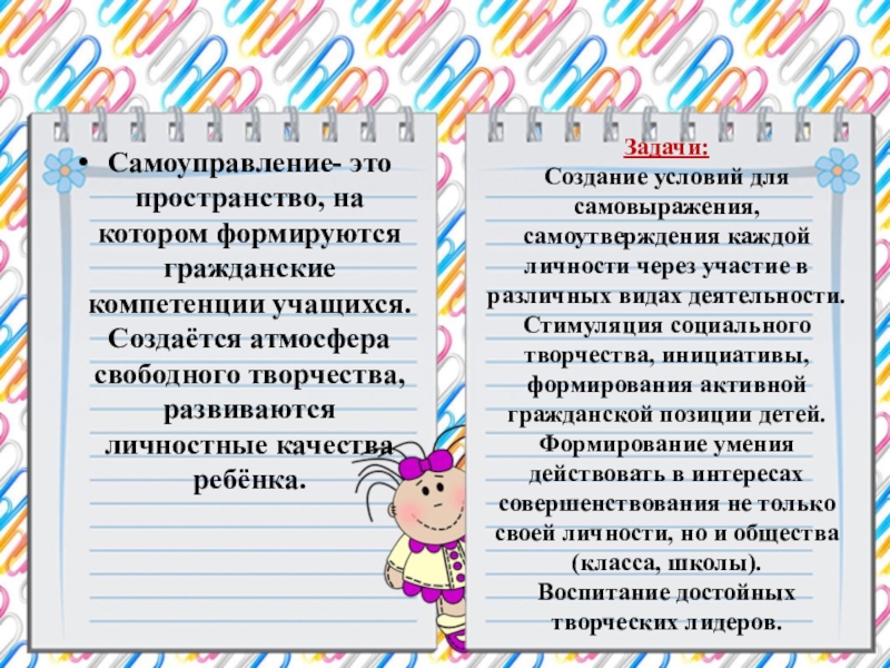 Самоуправление формирует готовность участвовать в различных проектах.