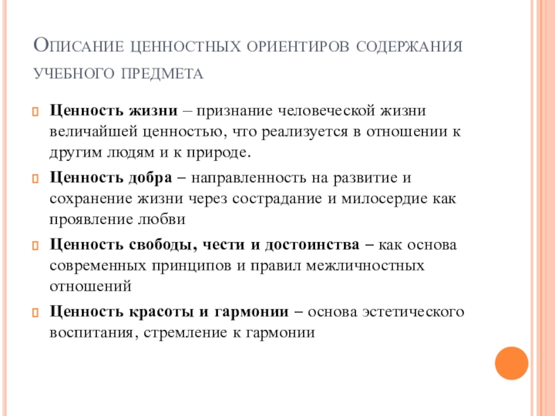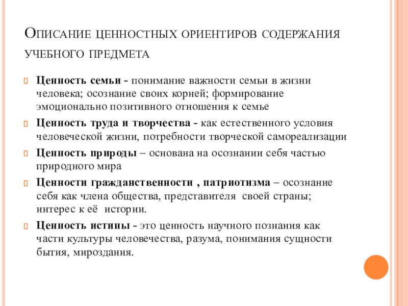 Слайд 5Описание ценностных ориентиров содержания учебного предмета