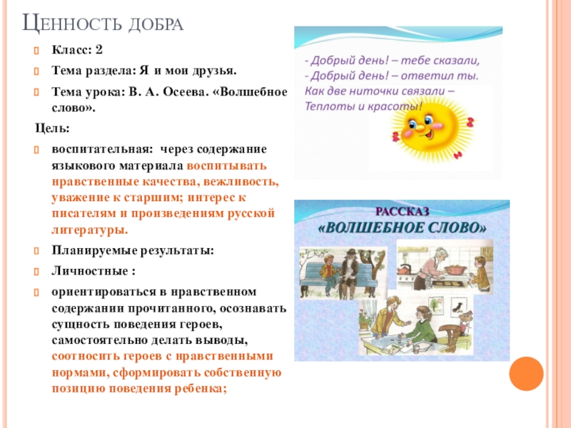 ориентироваться в нравственном содержании прочитанного, осознавать сущность поведения героев, самостоятельно делать выводы, соотносить героев с нравственными нормами, сформировать собственную позицию поведения ребенка;