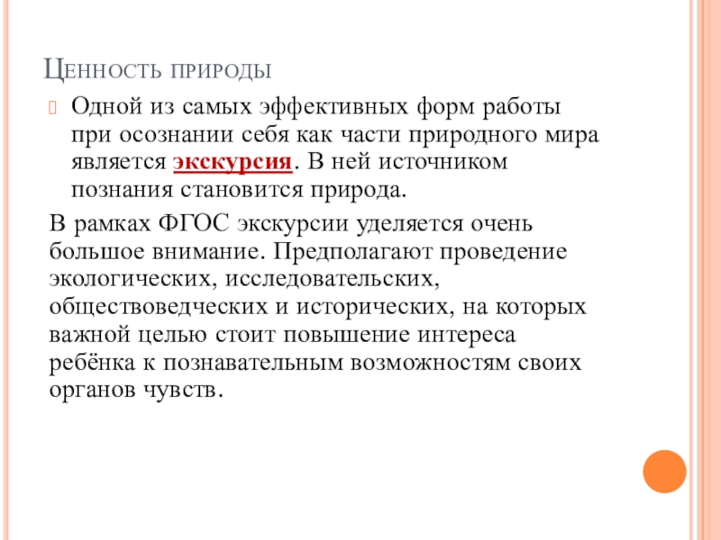 части природного мира является экскурсия. В ней источником познания становится природа.