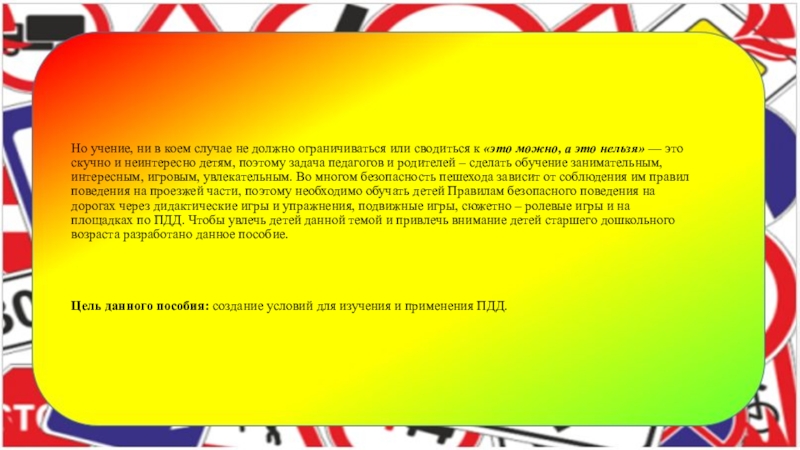 Цель данного пособия: создание условий для изучения и применения ПДД.