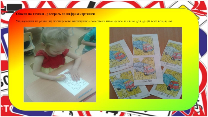 Слайд 12Обведи по точкам , раскрась по цифрам картинки